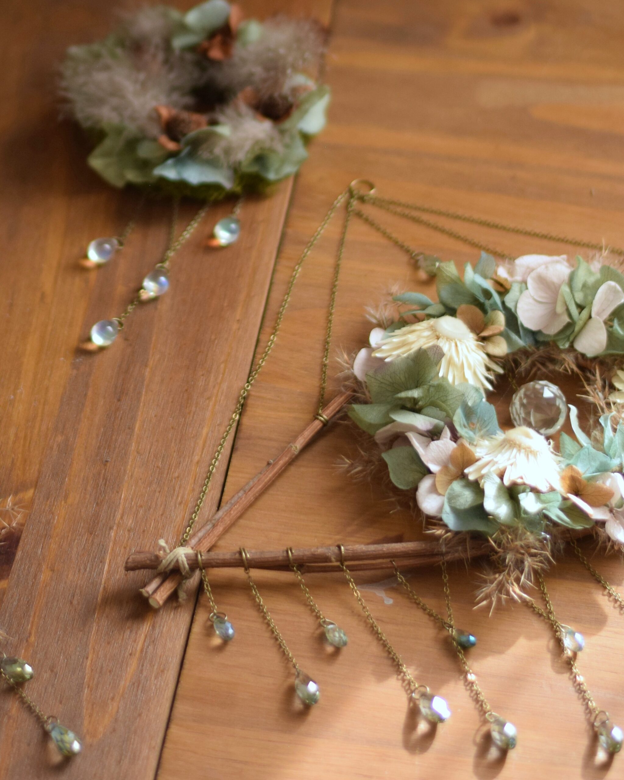 Enfin, pour accentuer son côté féerique, j’ai ajouté des chaînes et de nombreuses perles en cristal AB qui réflectent les rayons du soleil – que j’ai moi-même montées.